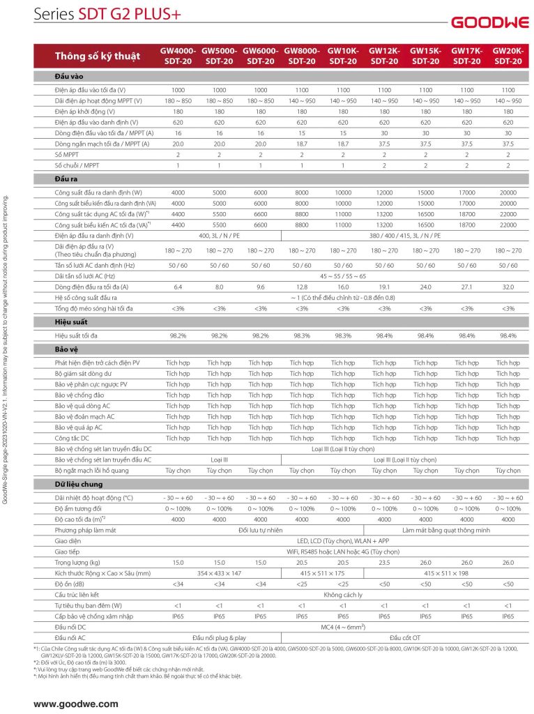 - Hiệu suất tối đa (GW20K-SDT-20): 98.4%.