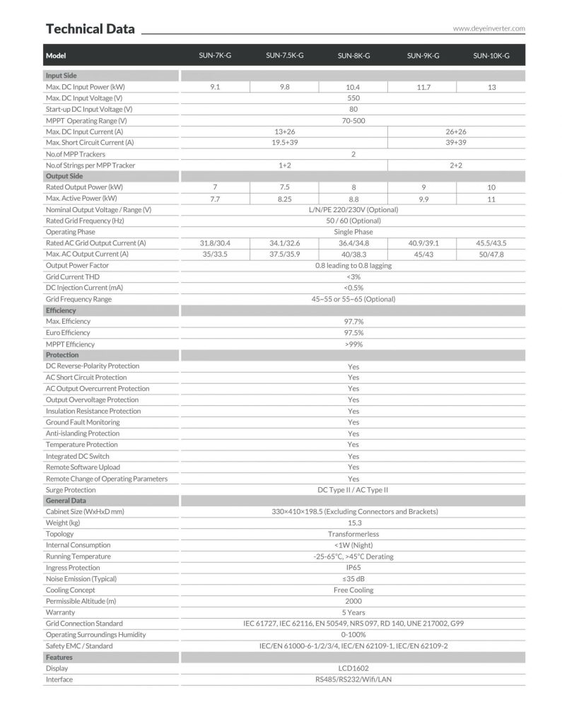 Thông số kỹ thuật Inverter hòa lưới Deye 8KW (SUN-8K-G)