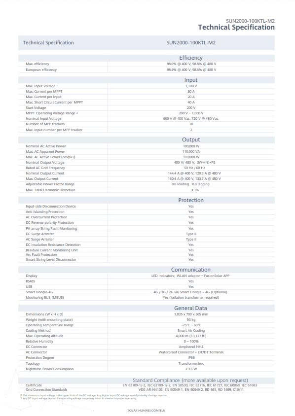 Inverter Huawei SUN2000-100KTL-M2 AFCI