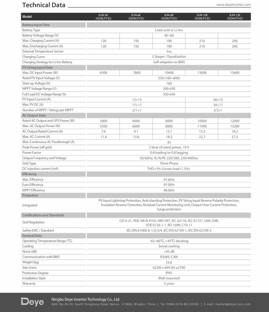 – Inverter hybrid Deye 12kw SUN-12K-SG05LP3-EU Đạt tiêu chuẩn chứng nhận chất lượng