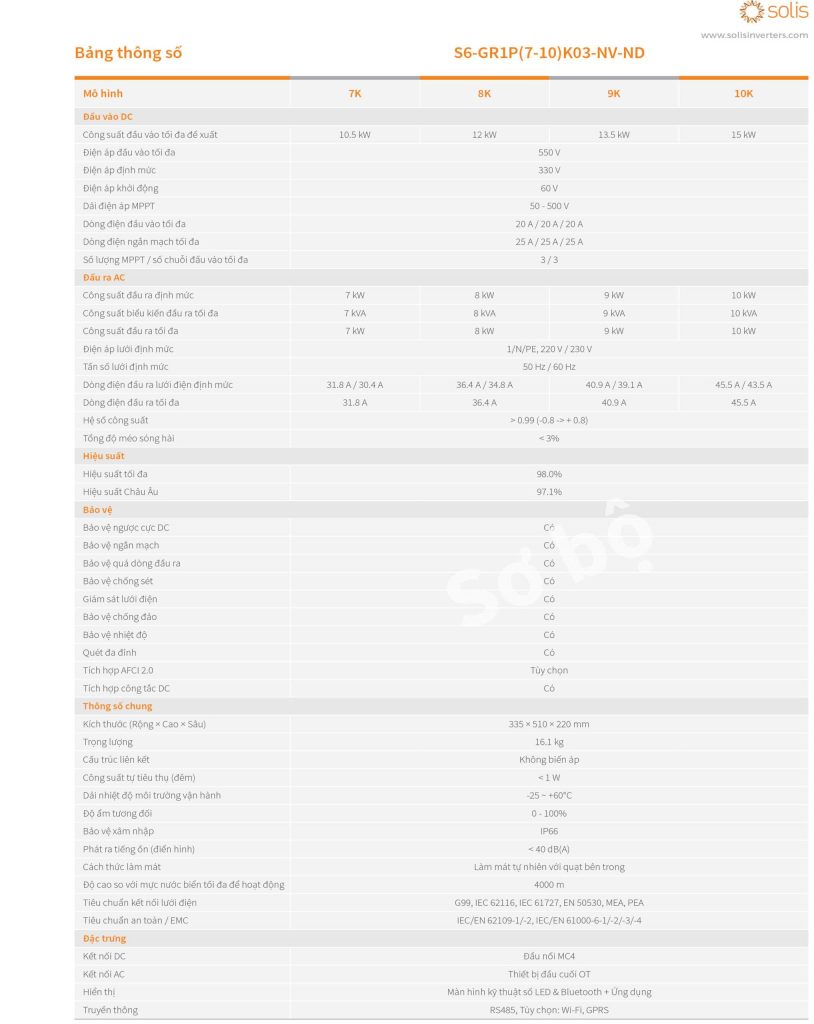 - Thiết kế 3 MPPT, phù hợp với mái nhà nhiều mặt