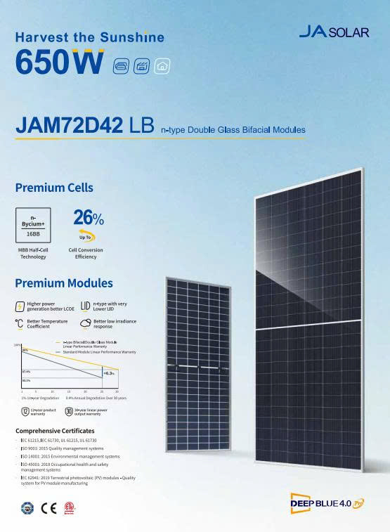 Ưu điểm nổi bật của tấm pin năng lượng mặt trời JA Solar 650W