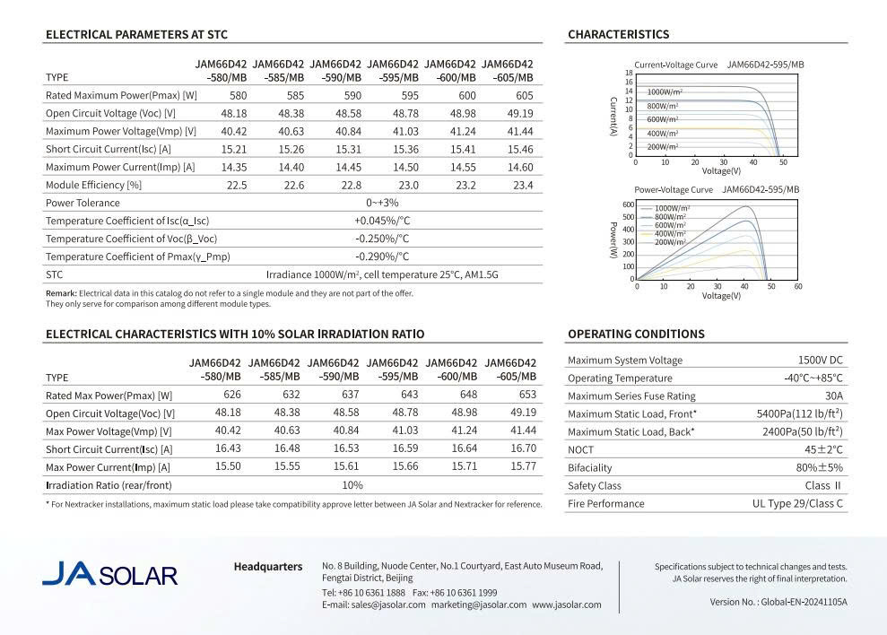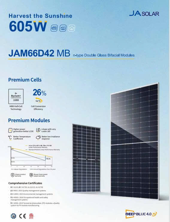 Tấm pin năng lượng mặt trời JA Solar 605W – JAM66D42 MB