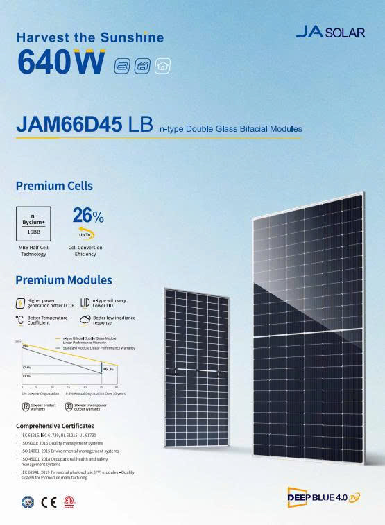 Tấm pin năng lượng mặt trời JA Solar 640W – JAM66D45 LB