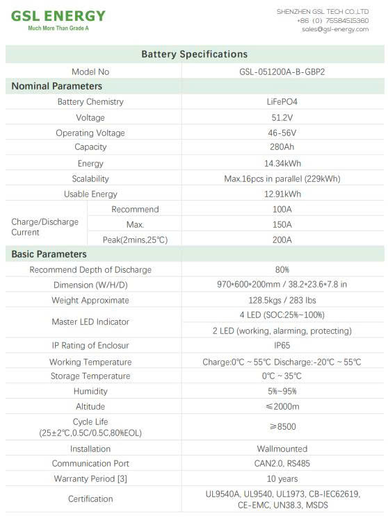 Tùy chọn dung lượng linh hoạt: Chọn giữa dung lượng 10kWh và 14,34kWh với dòng điện định mức 200Ah hoặc 280Ah ở điện áp 51,2V, đáp ứng nhiều nhu cầu năng lượng khác nhau cho hộ gia đình và doanh nghiệp.