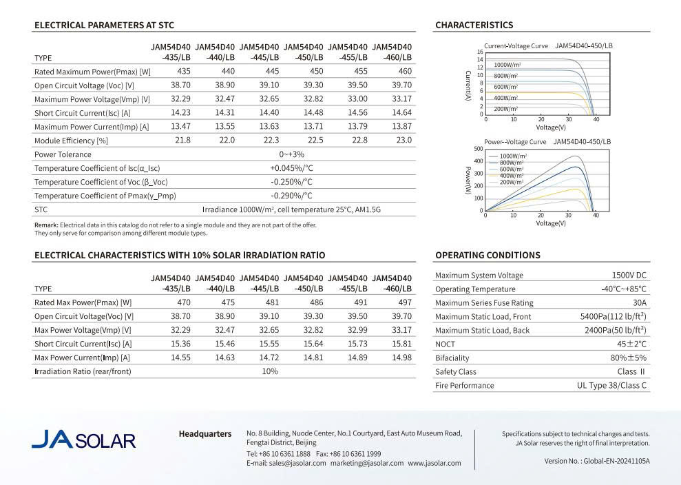 Tính năng ưu việt của Tấm pin JA Solar 460W