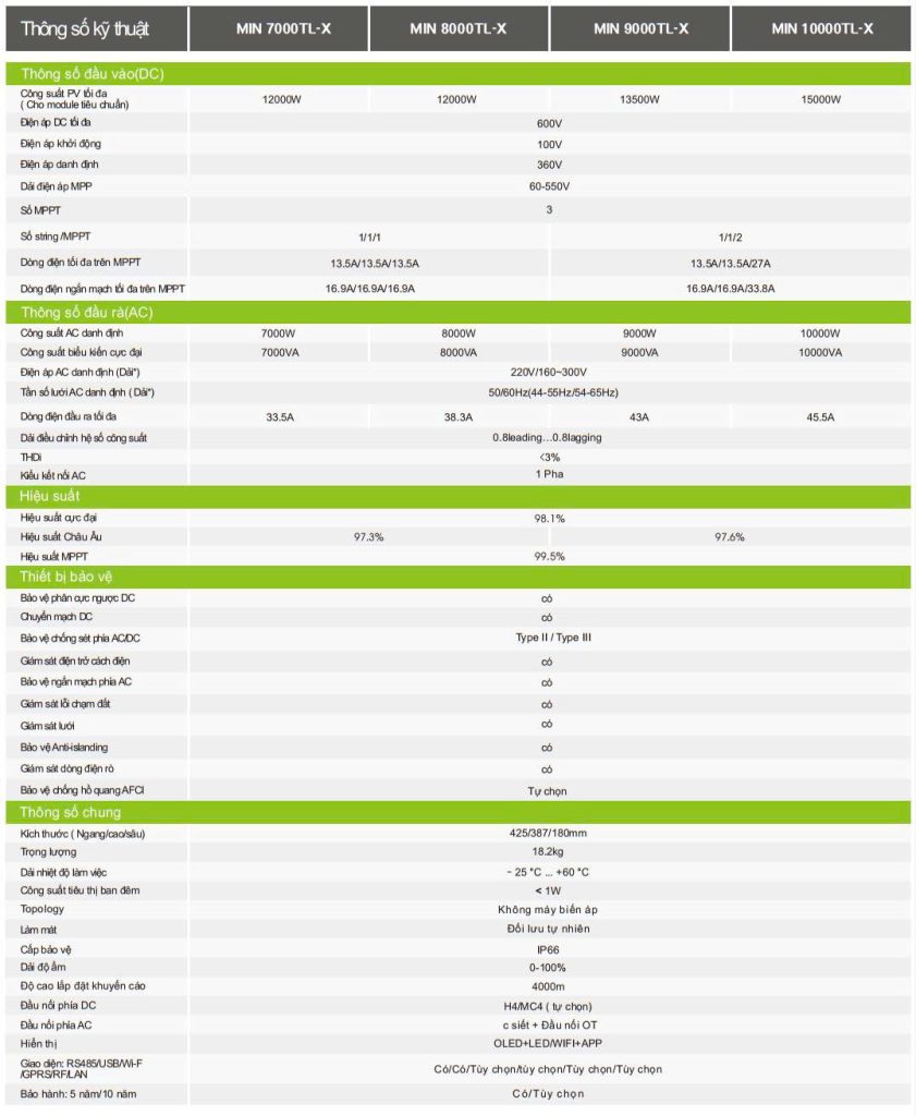 Thông số kỹ thuật Inverter hòa lưới GROWATT 10KW MIN 10000TL-X